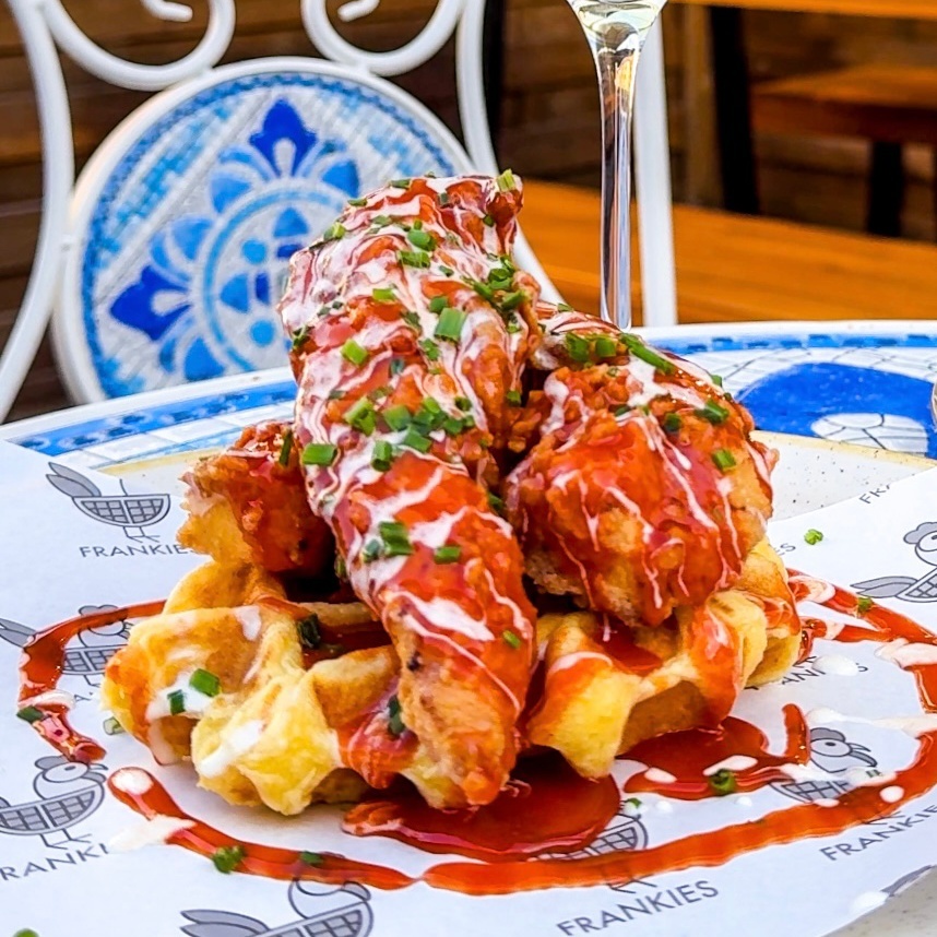 Frankie's Fried Chicken & Waffles available Saturdays from 12-3pm and again from 5-9.30pm. To avoid missing out, book a table below.