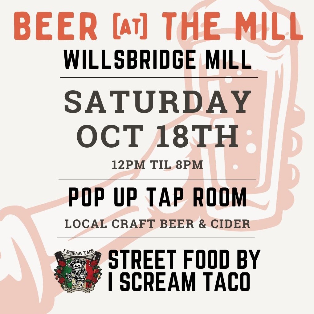 A special pop up taproom at Willsbridge Mill and their apple pressing event, with Mexican food from I Scream Taco!